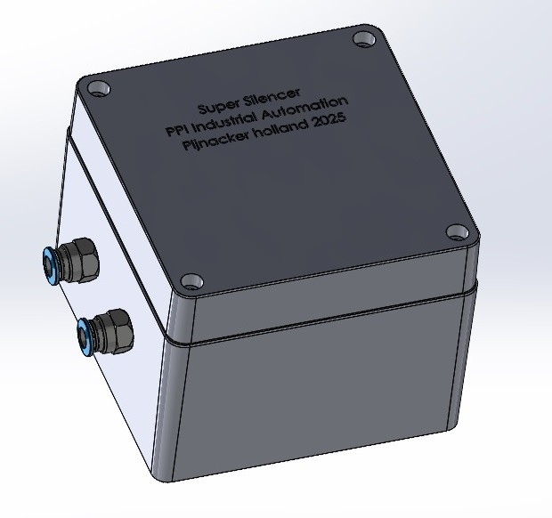 In een productieomgeving kan het gecombineerde geluid van verschillende pneumatische machines bijzonder aanwezig zijn. Met de Pneumatic Super Silencer reduceer je het afblaasgeluid van luchtcylinders tot 80mm doorsnee tot een amper waarneembaar niveau. Dit verminderd het vermoeiingsniveau in de productie en vergroot het welbevinden van uw medewerkers. Geschikt voor beide uitlaten van een standaard ventiel. Afmetingen 100x100x80. Verkoopprijs is 75 euro.